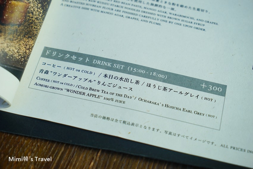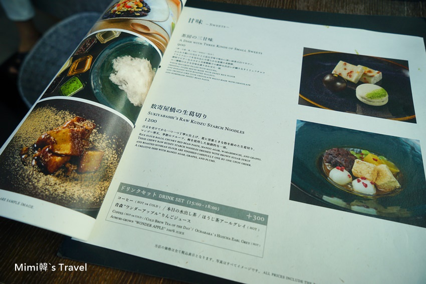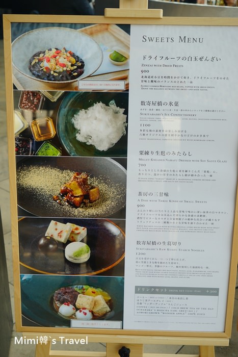這應該是午茶菜單,都是造形好美的和菓子&甜點,還有一款像是剉冰的東西,難道台灣一碗50的剉冰,來到東京竟然成了貴婦午茶了嗎?重點是還看好多桌都有點捏 😆
