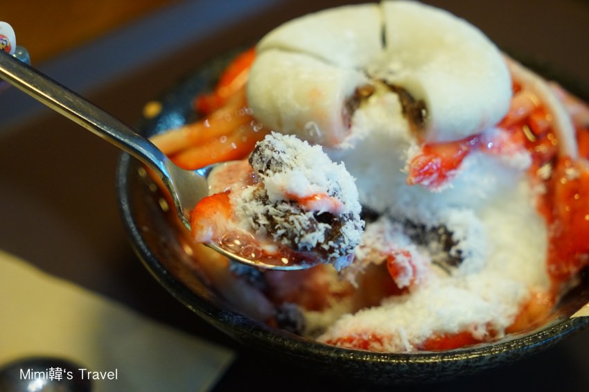 整碗冰吃起來口感層次真的挺棒,而且我們一開始原本以為草莓底下就是雪花冰而已,結果挖下去裡面竟然還有紅豆泥喲!!!好好吃~