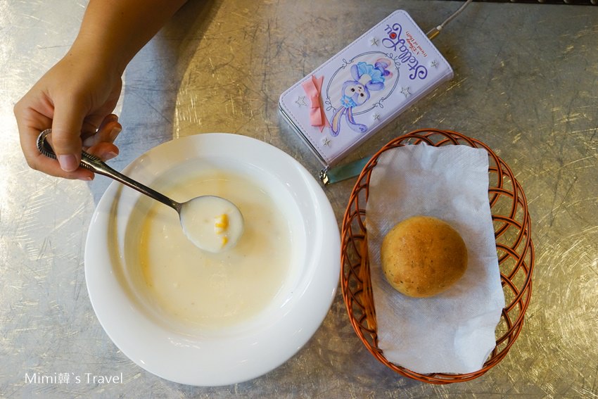 而這天玉米濃湯和紅茶都還不錯喝,麵包有黑胡椒香氣,但吃起來普普稍微有點乾。