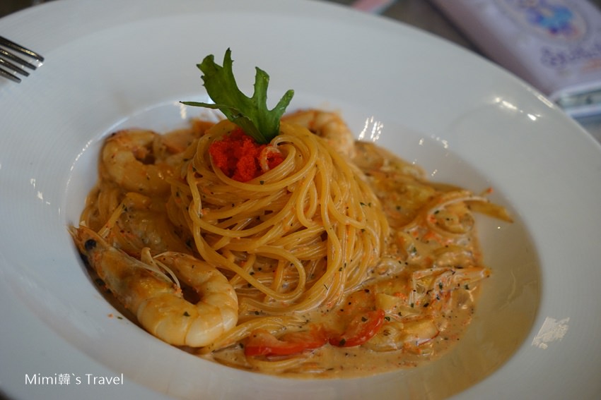 看到菜單上有姐最愛的關鍵字明太子,所以桌上就出現一個明太子海鮮義大利麵($258元)惹~
