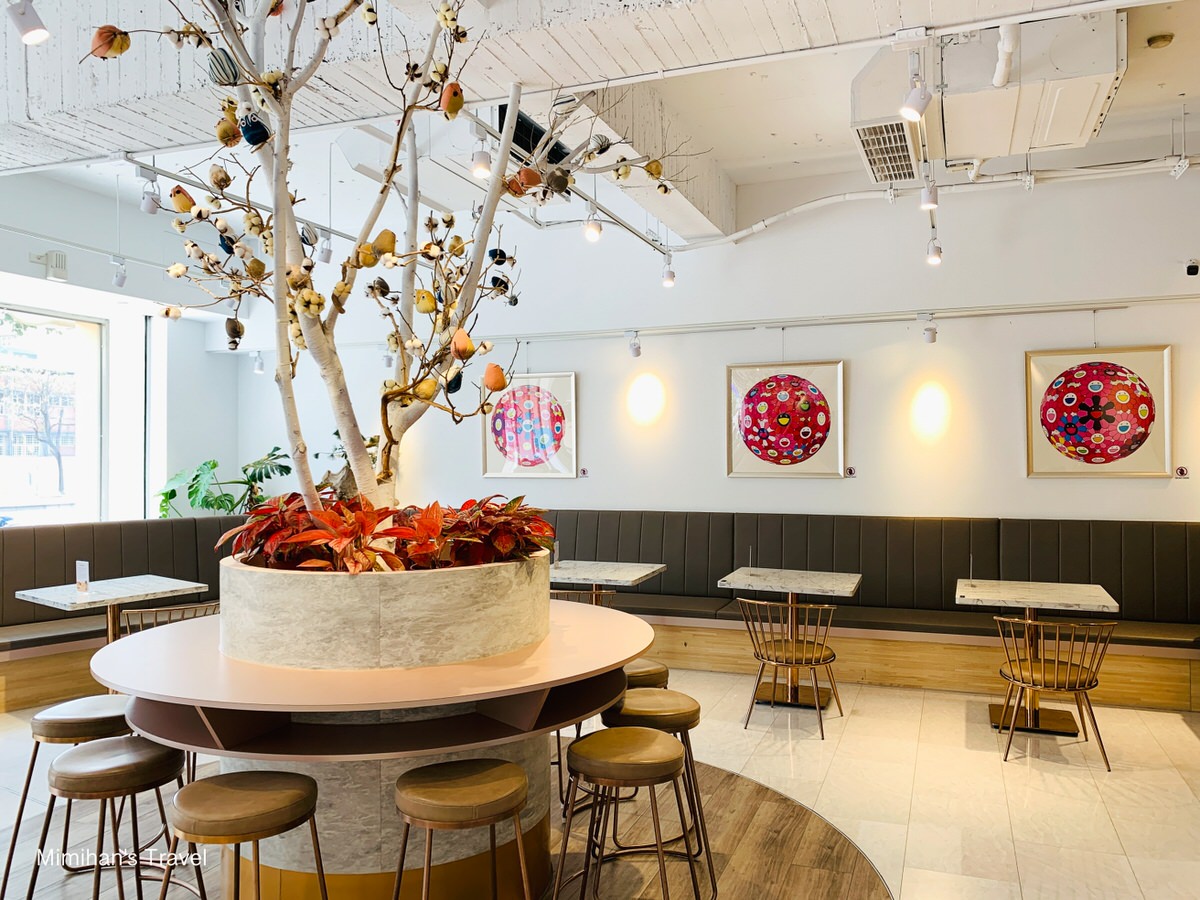 店內環境很美,牆上還掛著最近很紅的日本當代藝術家奈良美智、村上隆的作品,大理石桌面,貴氣的椅子⋯整體佈置都走浪漫風格,說是嘉義最美豆花店也不誇張啊!