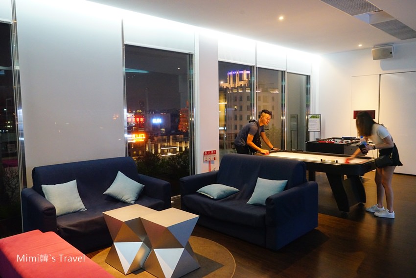 12樓的Giant’s Pantry是給房客專屬的公共空間,放了遊樂設施、健身器材、沙發桌椅、還有免費使用的Bar台,走出天台還可以欣賞台中夜景,滿棒的。