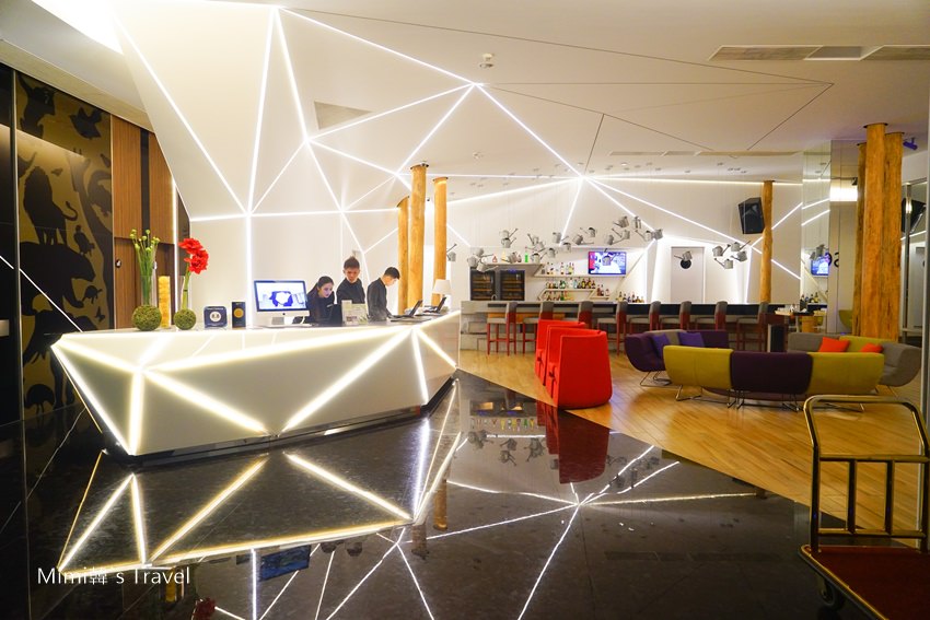 大廳帶著卡通與魔幻的時尚味道,燈光與地板反射出來的線條,構成了很有趣的視覺感。看官網上介紹說是以傑克與魔豆的故事為設計發想,就像充滿好奇心與冒險精神的勇敢男孩,把握挑戰新事物的機會戰勝巨人,從此過著幸福快樂的日子 😆