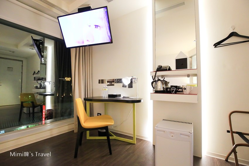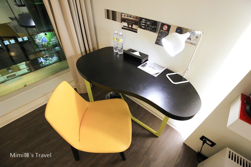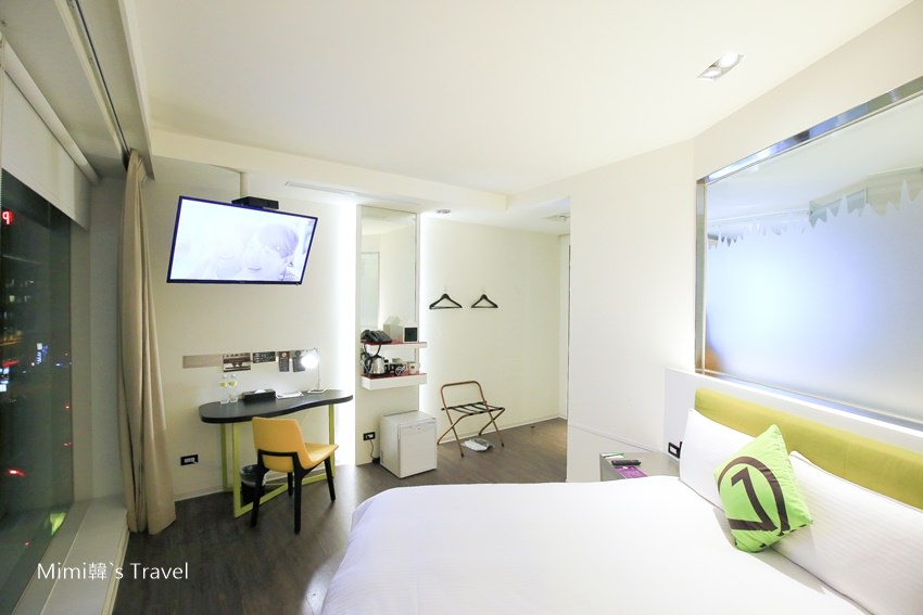 我們預訂的是標準雙人房,價格是$2,016元(不含早餐),房間正對著Hotel 7 前的福星北路,不知道為何竟然不是方正的空間,不過整體還是滿有設計旅店的感覺。