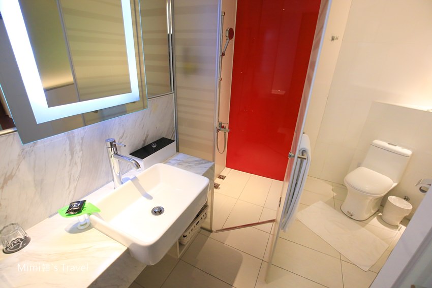 浴室乾溼分離設計,但淋浴時好像門會滲水出來,這天洗完之後地板變得有點濕滑,空間使用起來不會感覺很侷促。