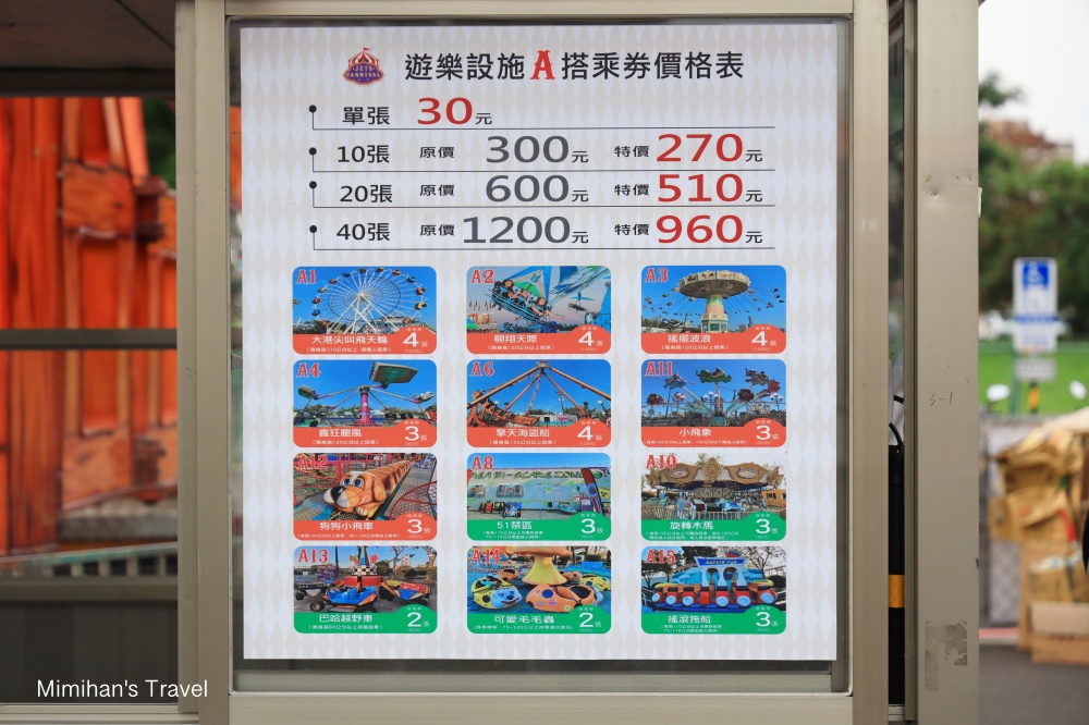 搭乘券單張30元,每種設施需要2~4張搭乘券,推薦大家在KLOOK平台上買,馬上買馬上用,有10張/20張/40張的選擇,多張會更划算,而且JETS嘉年華搭乘券可以多人共用,例如有兩個人要玩就買40張特價960元,算下來平均每張只要24元,比單買便宜很多。