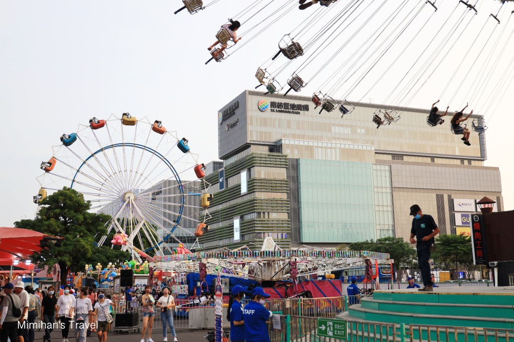 這張就很清楚啦!台南JETS嘉年華就在最新的南紡置地廣場對面,平實公園旁邊,現場有摩天輪,遊樂設施晚上也會亮燈,走過路過不可能沒看到。活動時間是2022/07/30~10/10,為期大約兩個半月。停車的話可以找找路邊沒劃線的地方,或者平實公園地下停車場也還蠻便宜。