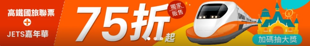 ✅ 推薦:台南JETS嘉年華高鐵聯票,乘車75折