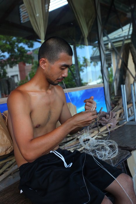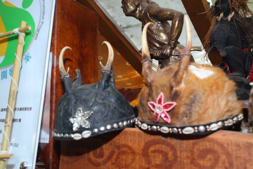 工作人員一會兒手工整線、一會兒拿起布農男子服飾做解說,素材與時俱進的服飾,用過獸皮、用過毛皮,甚至電線、塑膠珠的是創作的元素。