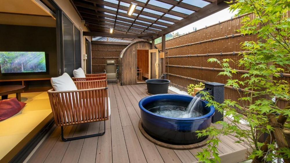 房間內通常都有半露天風呂或檜木風呂,用的水是來自峽谷的神聖水源。這裡的氛圍比神仙旅館再輕鬆年輕一點,很適合想要有一點奢華感,但又不想太拘束的情侶或夫妻。