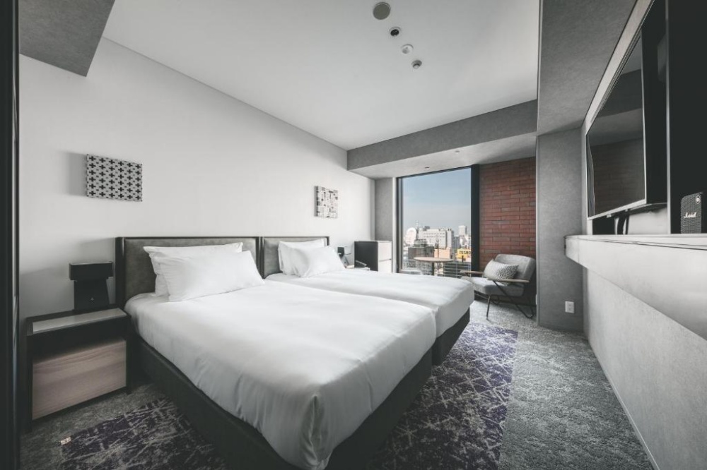 札幌溪流飯店 (SAPPORO STREAM HOTEL)這間是 2024 年才剛開幕的超級新星,直接進駐最新的地標商場「COCONO SUSUKINO」樓上。它的位置簡直無敵,直通地鐵薄野站,連一秒鐘的冷風都不用吹。大廳設計非常時髦,融合了北海道的自然元素與現代摩登感,大面落地窗可以直接俯瞰薄野十字路口著名的 NIKKA 威士忌招牌。這裡主打「 Lifestyle Hotel」,房間內的選品都很有質感,頂樓還有視野超好的酒吧與戶外露台。對於喜歡住新飯店、追求便利性與打卡畫面的旅客來說,這裡絕對是目前札幌的住宿天花板。