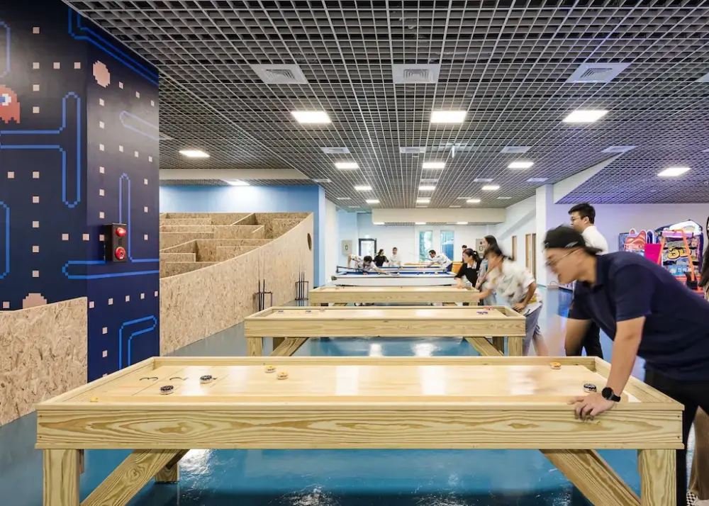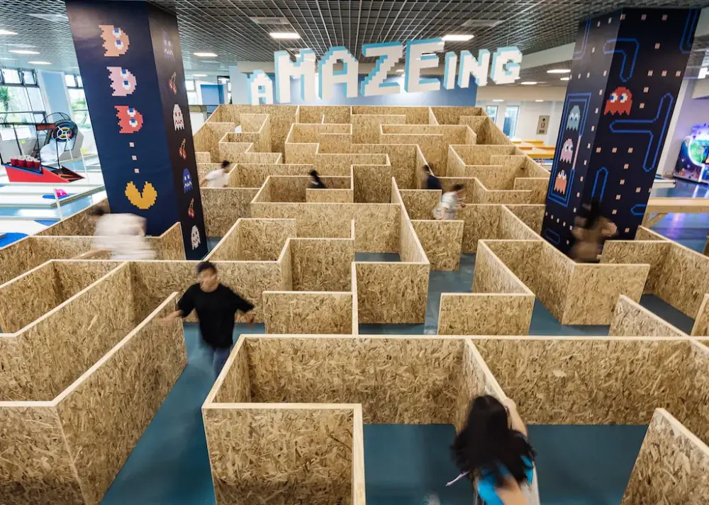 凱渡廣場溫泉酒店規劃了400坪的室內遊戲區,有各式遊戲機台、室內迷宮、瘋狂迷你高爾夫(Crazy Mini Golf)、限量Nintendo Switch和在台灣少見的沙狐球(Shuffleboard)等設施。對親子出遊來說,這些「下雨備案」比看到大海還要安心;而且器材狀況良好,工作人員會在每次歸還後檢查與消毒。