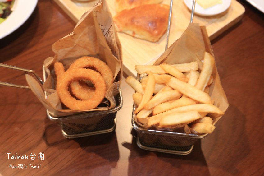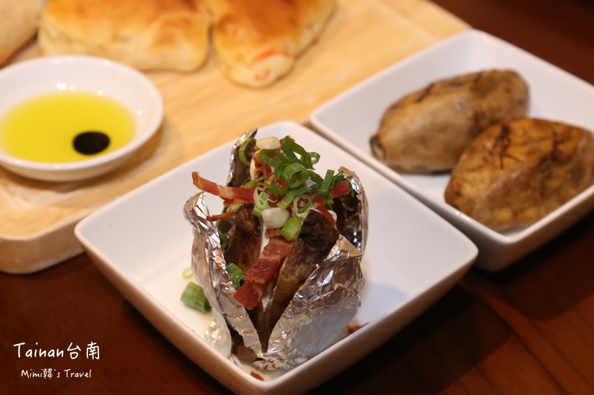 菜單上有提供六種配菜可以選擇,這天就選了香烤帶皮馬鈴薯、烤紅薯、洋蔥圈和炸薯條,味道都挺好。尤其是馬鈴薯還會有服務人員拿青蔥、培根和酸奶醬來塗抹,口感豐富特別;這天的紅蕃薯也很甜~