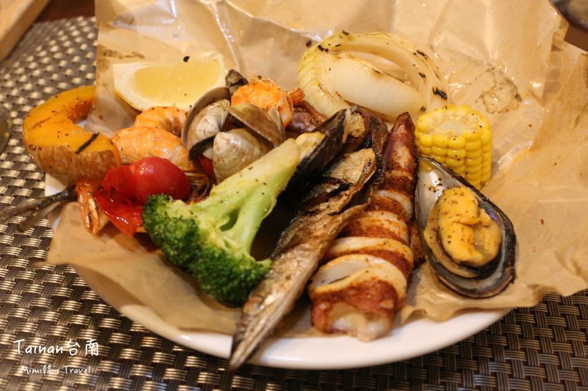 除了超飽滿、肉質超甜美的帝王蟹腿,一桶海鮮裡還有蝦子、花枝、淡菜、秋刀魚以及幾種燒烤蔬菜,也是相當豐富。不過也提醒大家這道料理是會辣的,如果要給小朋友吃就只能避免了唷~