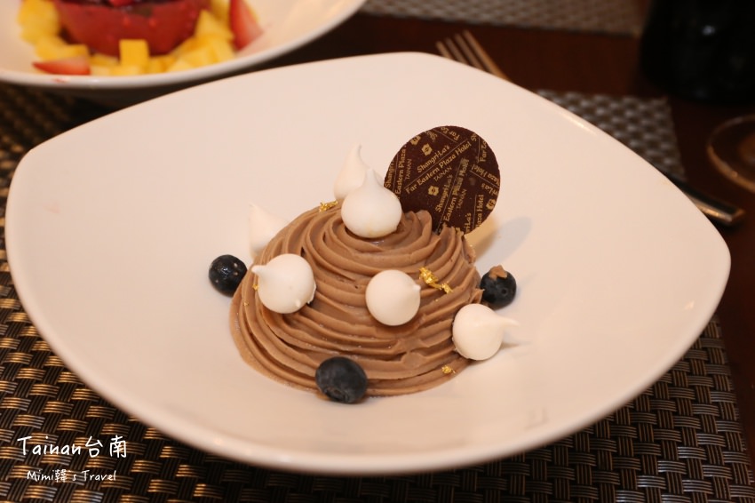 黑醋栗蒙布朗這也都是出自香格里拉飯店的甜點主廚隻手,綿密細緻口味輕甜,入口滿是栗子香氣~