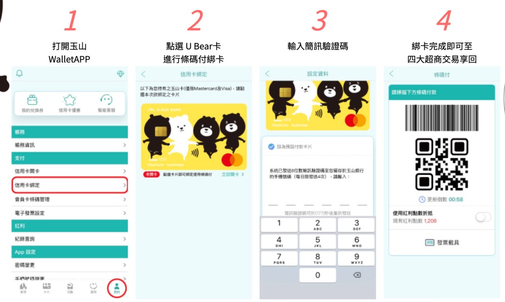 這個就稍微麻煩點,因為「需綁定於玉山Wallet使用條碼付支付」在指定超商消費,才能符合回饋資格。我個人目前還是習慣直接刷玉山Pi卡累積點數就好哩哈哈哈。