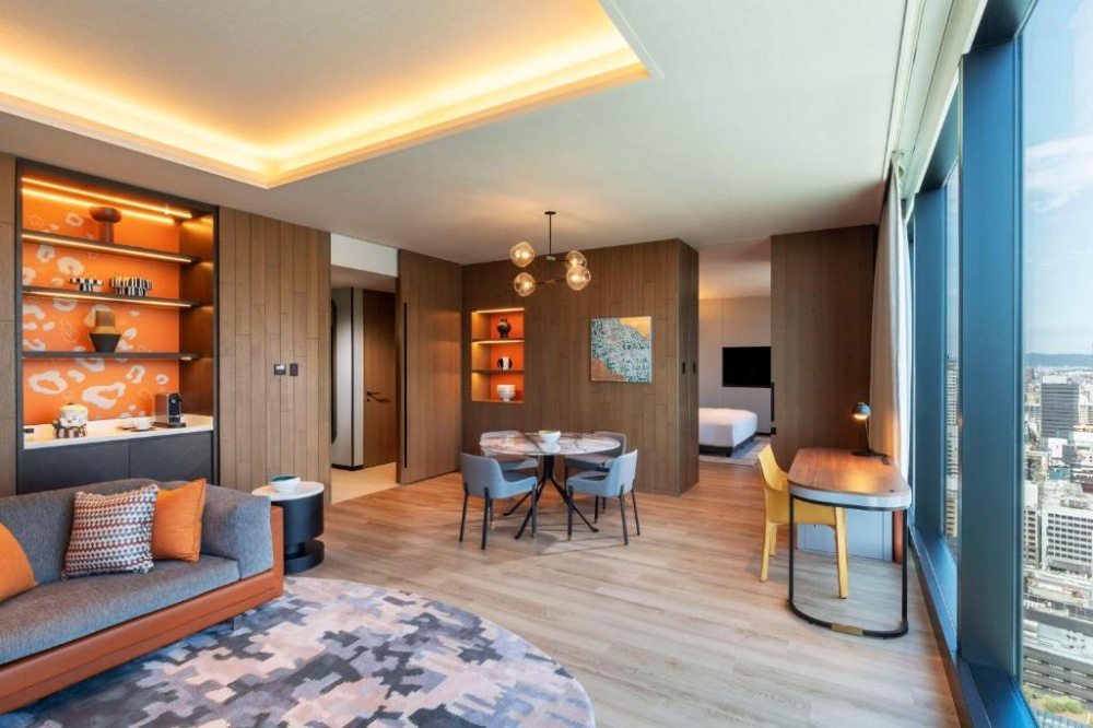 THE OSAKA STATION HOTEL, Autograph Collection這間飯店是大阪站城最新亮點,結合 Autograph 系列的精品風格,整體質感非常高。位在大阪站正上方,雨天行程也能完全不淋雨完成購物與覓食。房間寬敞、視野良好,部分房型可以直接看到車站鐵道路線,小孩會興奮地看著電車進出。飯店備品高級,房內隔音出色,即使住在車站旁也完全不吵。