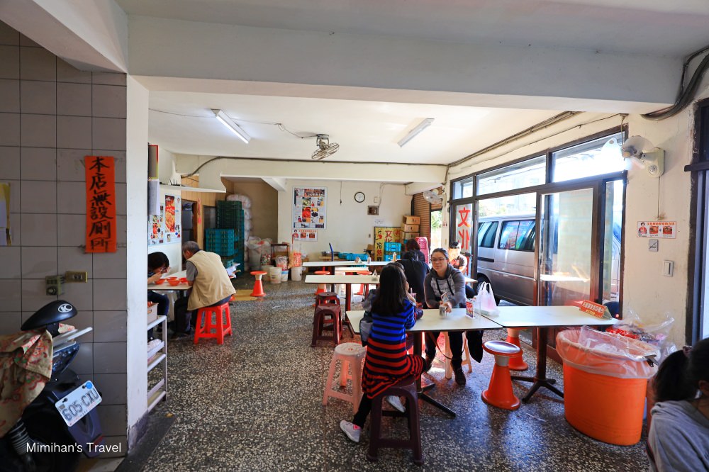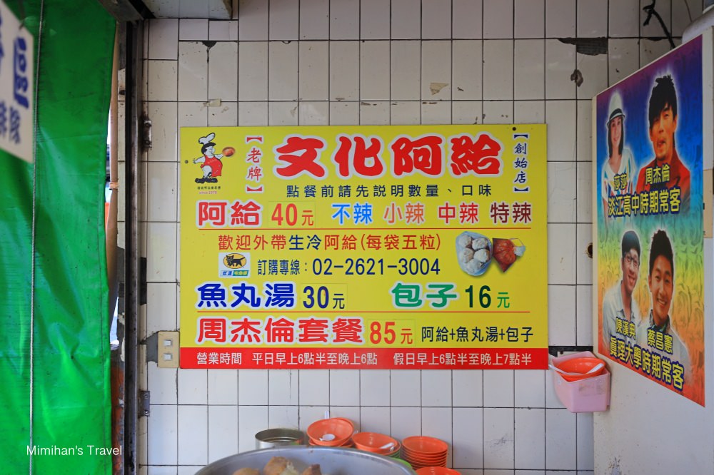 門口招牌印著文化阿給老闆與眾多明星藝人的合照,而店裡分成外帶區和內用區,點好餐再自己拿到旁邊的桌子去吃。其實Mimi對於文化阿給並不陌生,因為老公之前是唸淡江大學,學生時代我們就曾經騎著摩托車來附近玩,十幾年後再訪感覺特別懷念。