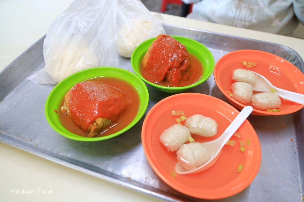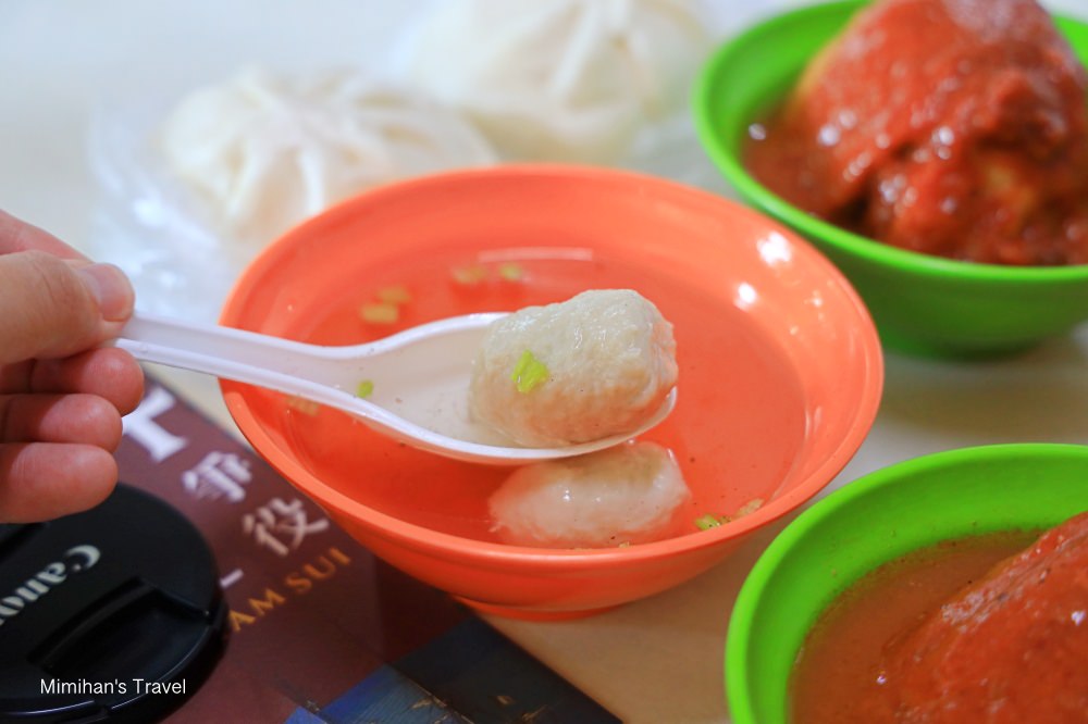 我們這天就點了兩個周杰倫套餐(阿給+魚丸湯+包子),不管周杰倫是不是真的這樣吃,反正店裡就賣這三種通通可以吃到。話說不知道店家這樣打廣告,需不需要付給周杰倫、莎莎他們授權費用吼?