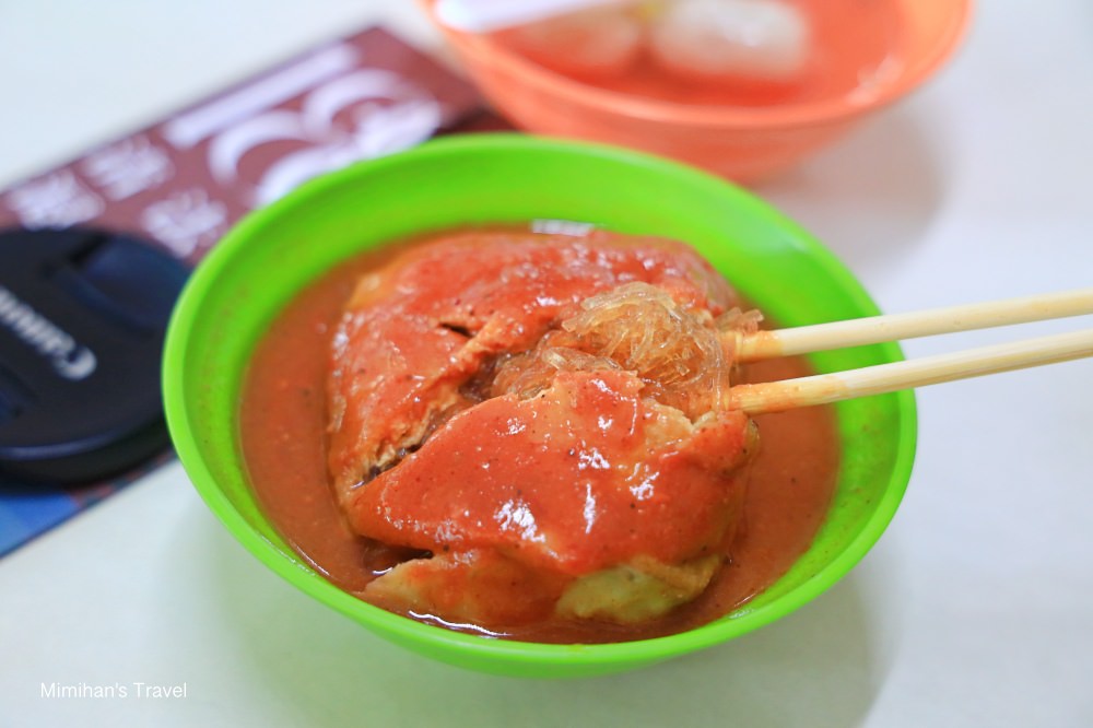 吃的時候就把油豆腐切開,然後讓冬粉、豆腐皮沾滿醬汁再入口,而文化阿給的醬汁口味偏重,冬粉不會軟爛還保有QQ的口感,而醬汁甜甜辣辣蠻開胃,順順又吃光光哩。說真的其實Mimi早期第一次吃淡水阿給的時候並不喜歡,但現在再吃卻又覺得它不錯,這種口味的改變也是挺奇妙。