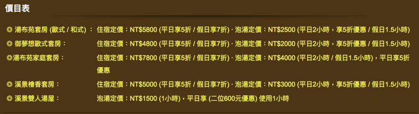 ✔︎溪景湯屋600元起