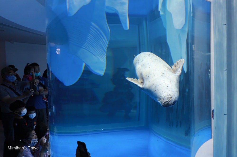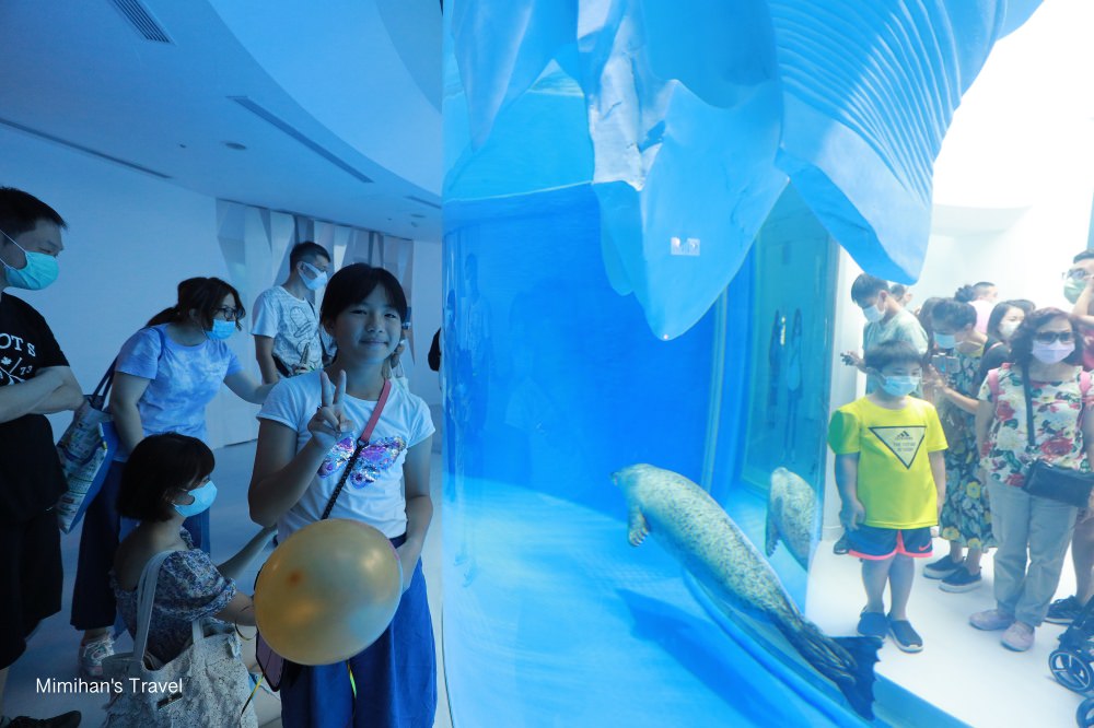 這區是Xpark水族館裡最熱門的拍點啦!展區打造成極地冰山的海底環境,連溫度都感覺有點寒冷,而可愛爆表的海豹在裡面游來游去,三不五時還會好奇的停在玻璃前看看小朋友在做什麼。