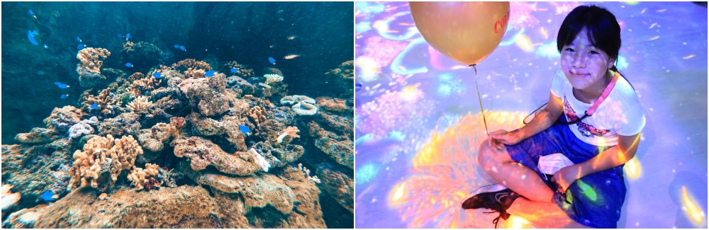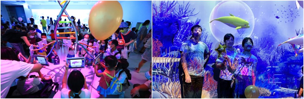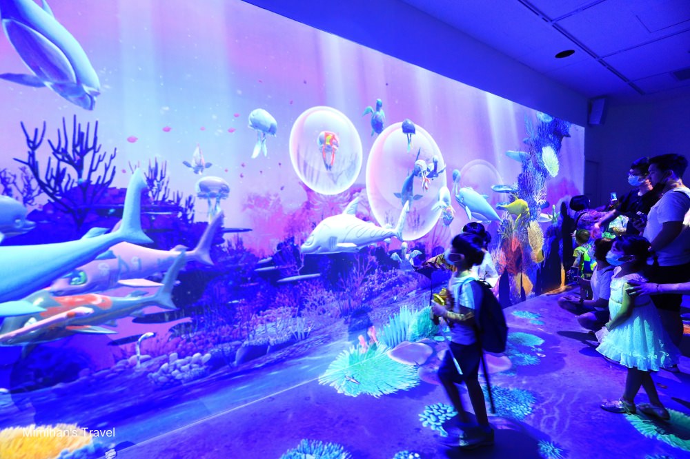 虛實互動區是小小朋友最愛的地方,先在平板電腦上彩繪,然後自己的作品就會出現在巨大的虛擬水族箱中,孩子們對這種創互動裝置都樂此不疲,紛紛展現創意各種神奇色彩的海洋生物都出現惹,現場有很多台,雖然人多但是稍微排隊還是都可以玩到。優惠門票:KKday|Klook