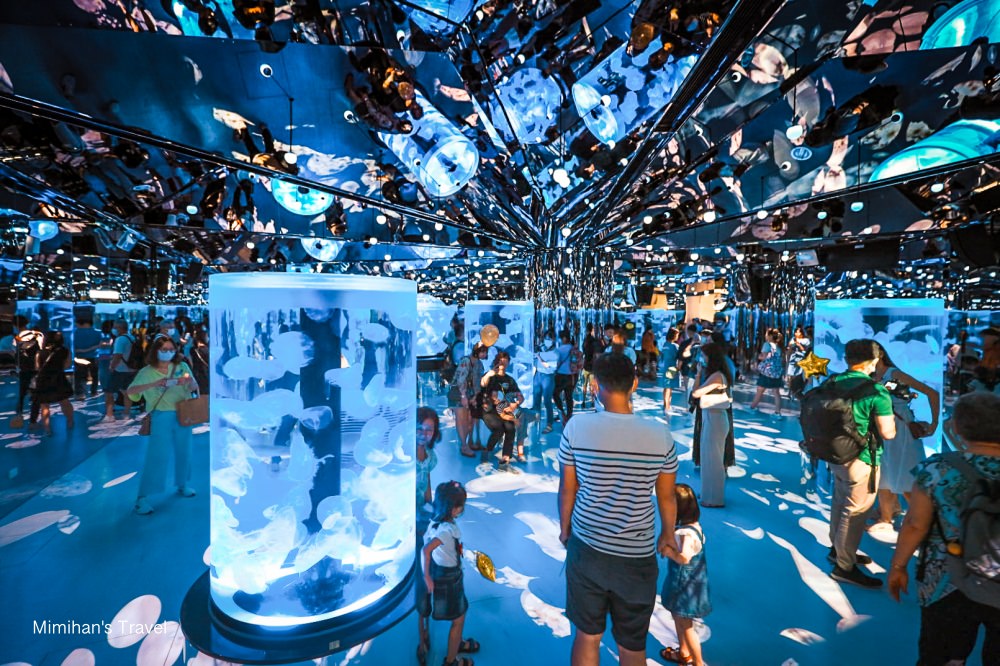 經過癒見水母的鏡面展場,更裡面還有一個「水母實驗室」,在那裡可以看到水母寶寶的成長過程,有的小到甚至要用放大鏡才能看清楚,大自然超神奇的啊!