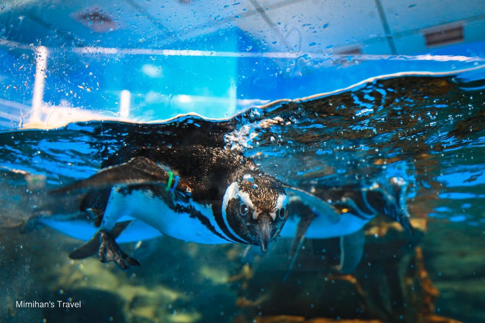 我們來的時候剛好遇到保育員正在餵食麥哲倫企鵝,當他把魚丟到水裡,原本走路呆頭呆腦的企鵝跳進到水中立馬變身蛟龍,游泳速度超快的啊!鳥不會飛卻超會游泳 😆