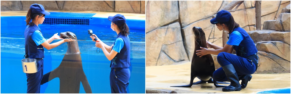 我們這天登場的是海獅,保育員並沒有讓他們表演什麼不合常理的動作,就是讓牠們張張嘴看牙齒、游游泳之類的,再告訴大家美洲海獅的生態,雖然只有短短五分鐘,但看這樣可愛的生物在眼前也是挺開心的呢~