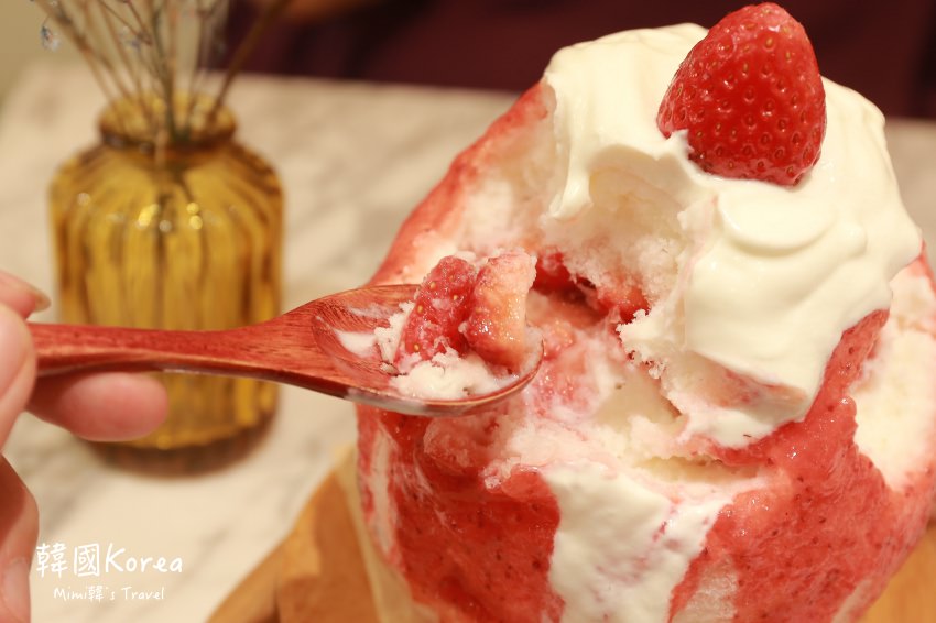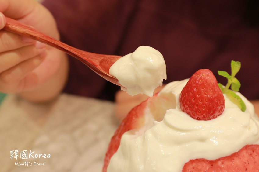 而且挖開刨冰,裡面還藏著很多新鮮草莓唷!每一口都很好吃,超喜歡!喜歡吃冰+拍照的話,來韓國旅遊時不妨找間軟雲堂試試看吧 😆