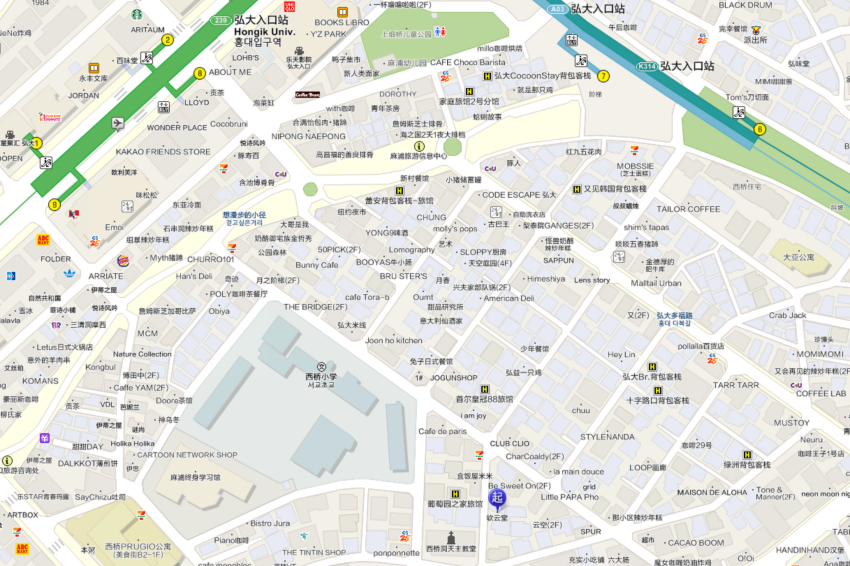 軟雲堂弘大店的外觀是間看起來可愛的小洋房,在夜晚散發出溫暖的味道,不過位置並不在熱鬧的街道上,週邊感覺蠻安靜,建議可以利用Google Map或是韓巢地圖來導航,就可以順利抵達啦!(詳細韓巢地圖請點)