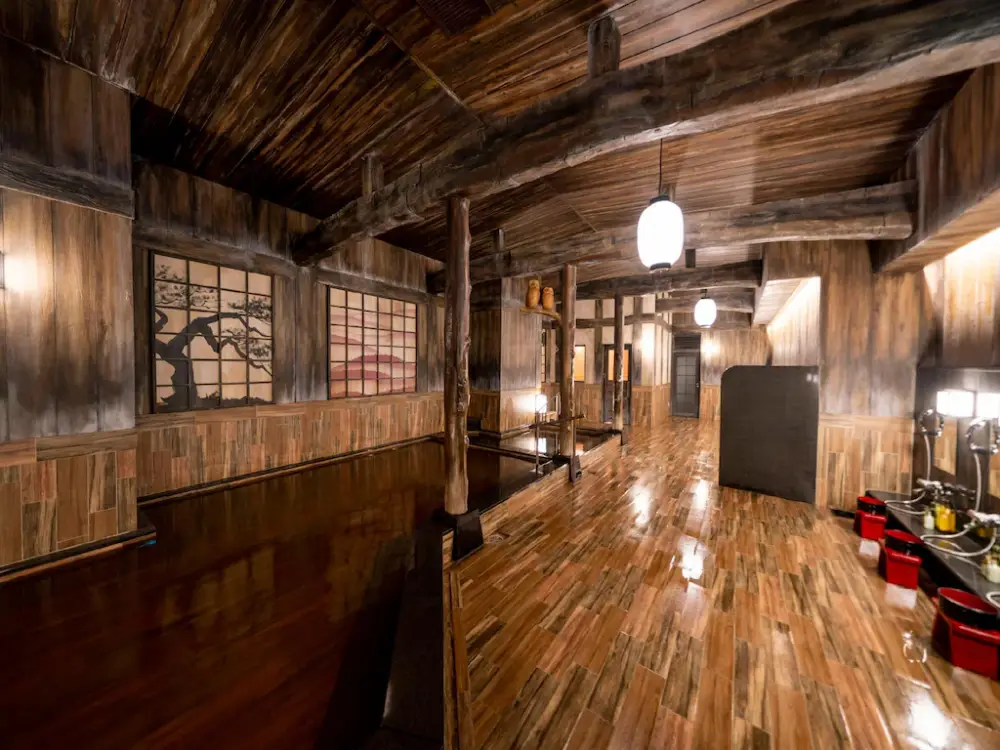 位置真的無敵好,從車站出來轉個彎就到,樓下還有便利商店。溫泉浴場的裝潢很有趣,像穿越時空。但要注意,大浴場是室內的(只有半露天),如果期待那種全景露天溫泉的人可能會失望。且因為離車站太近,低樓層靠鐵軌側可能會聽到火車聲,淺眠者建議備註高樓層。