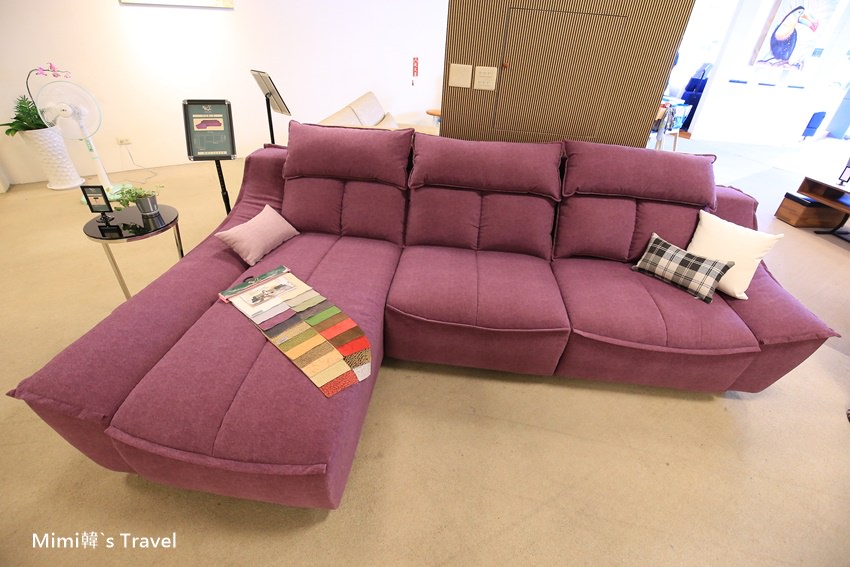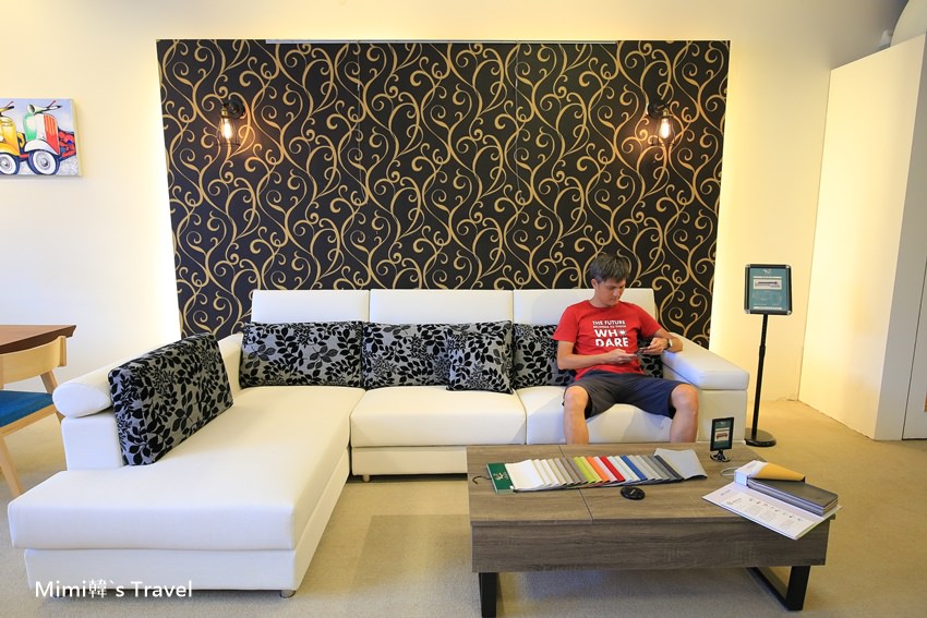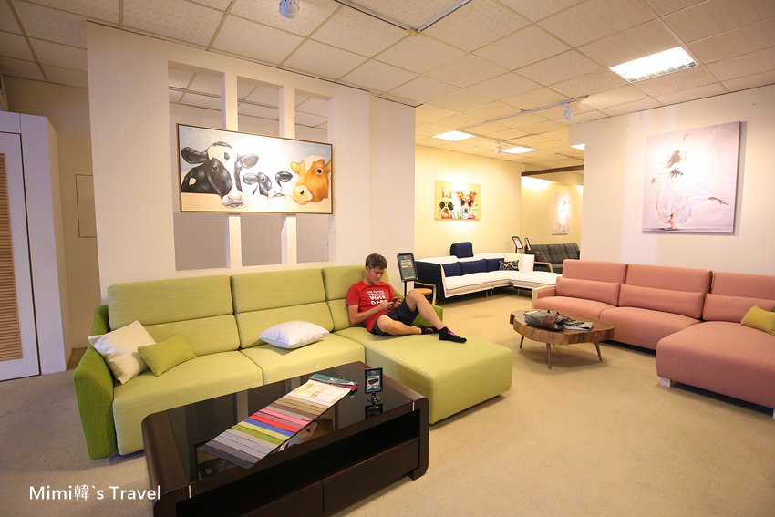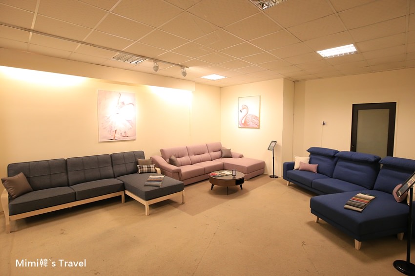 裡面主要當然全都是沙發,空間寬敞,整體款式還不少,比較特別的是坐又銘全系列都是布沙發、貓抓皮沙發,因為聽店員說老闆愛護動物不想殺生,所以工廠目前不再販售牛皮沙發了。