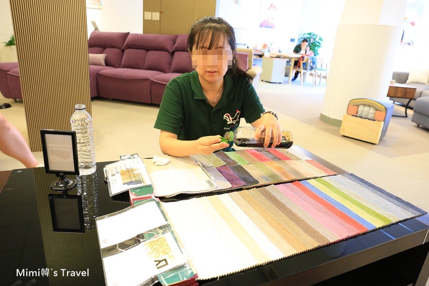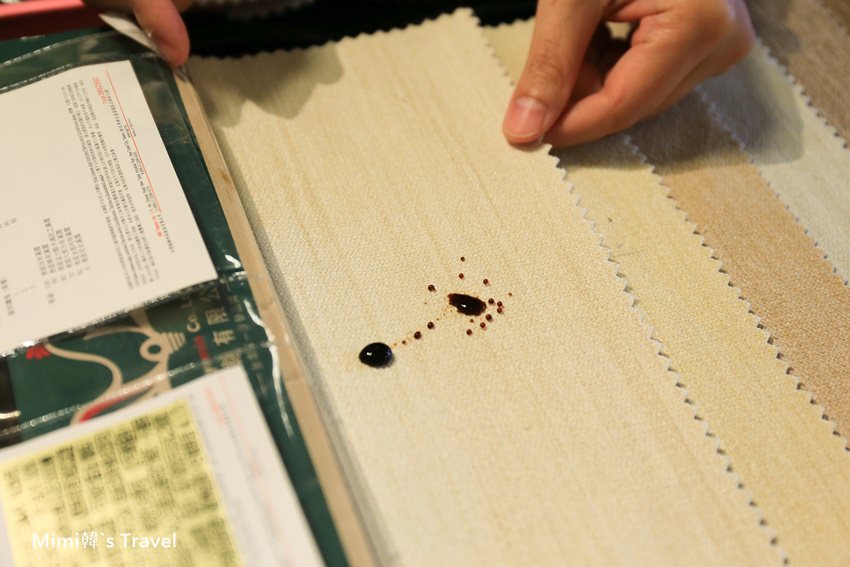 至於沙發的保養,服務人員也很專業的解說,甚至真的倒醬油、原子筆塗鴉來示範,看到這過程也讓人感覺到科技好厲害,原來布料已經可以做到抗塵蟎、高耐磨、耐髒的程度。