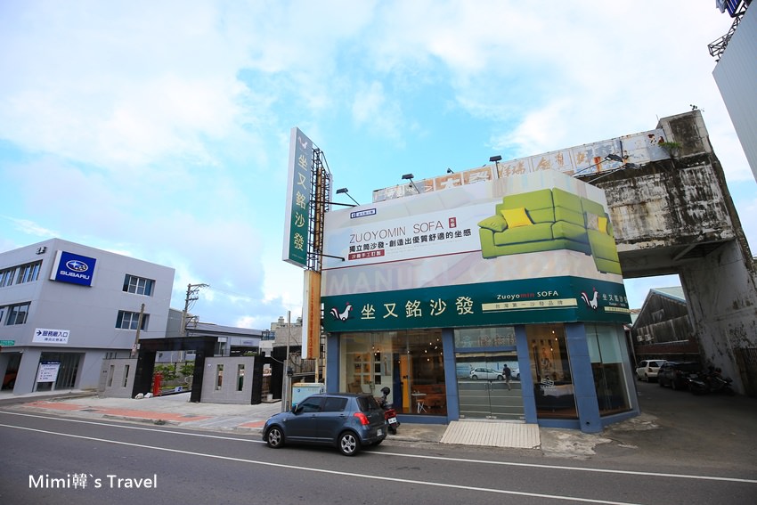 台南這間坐又銘沙發是工廠直營的門市,總工廠位於新北市,是從設計、生產、銷售完全MIT的專業沙發工廠,地點在永康中華路&中正南路交叉口,對面十字路口就是中油加油站,附近原本就是台南家具街,所以很容易找到它,門口沒紅線可以停車,旁邊小巷子裡也可以放。