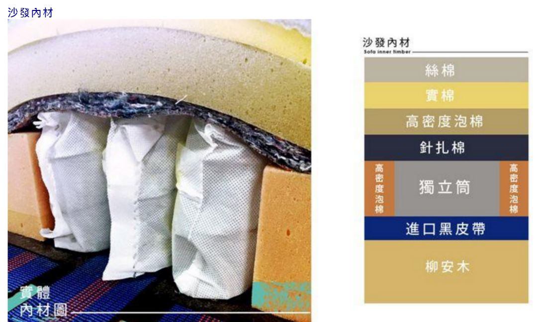 至於沙發內部結構也很講究,而坐又銘沙發最特別的地方是中間採用獨立筒彈簧,好處是會比單純用高密度泡棉坐感會更Q彈,而側邊也都同樣加裝高密度泡棉,增加四周圍支撐,就算小屁股坐在邊邊角角也不會很容易滑下來。另外就是看不到的地方通通5年保固,這也是對自家產品相當有信心捏 😆